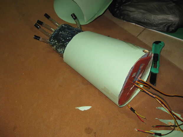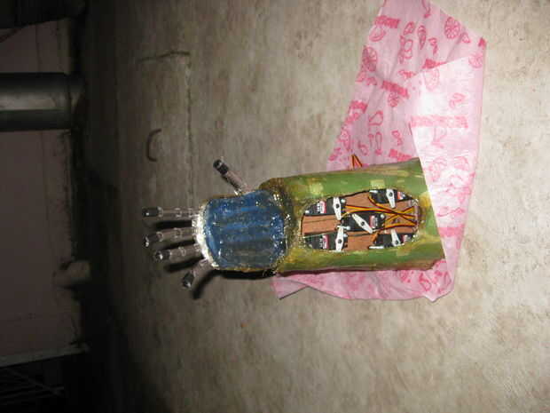 Cubrir la mano con cartulina y cortar un agujero para ver los motores.