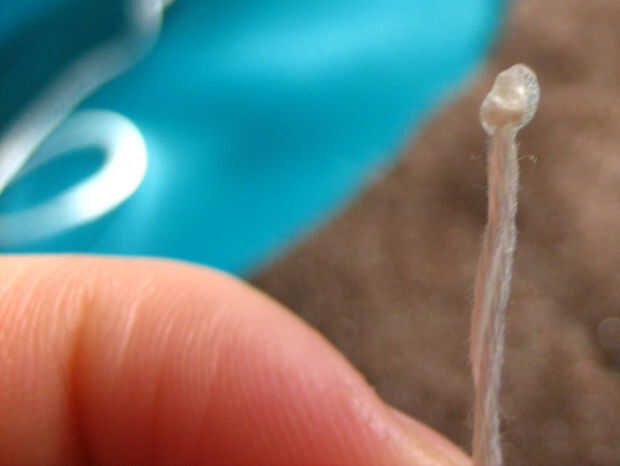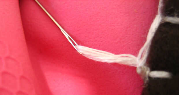Aquí está otro Consejo: a veces puede ser difícil tirar de la aguja y el hilo por el último nudo para seguir adelante. Agarra un par de guantes de goma para agarrar la aguja y tire de ella a través. Ahorrará los dientes. ;)