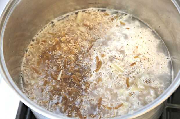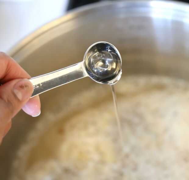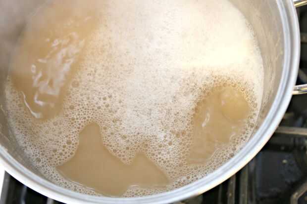 La textura de la sustancia de ebullición puede sorprender: que va a ser totalmente acuosa. Pero no te preocupes, esto es natural. Vamos a tener que dejar enfriar y espesar durante la noche para lograr la textura adecuada de jabón líquido para manos.