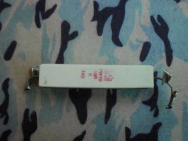 Encontrar una resistencia de 10W 10 Ohm alambre herida.  Debería decir algo como pw10 10R. Estos números son importantes. Si la resistencia de algo como pw1 dice que va a tener un colapso tan pronto como esté conectado. La resistencia puede ser diferente porque vienen en todas formas y tamaños.