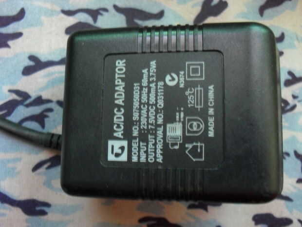 Se utilizará un 7.5VDC 500mA adaptador de alimentación. Esto calentará la resistencia suficiente para pegamento caliente del derretimiento (y quemar como una pistola de pegamento caliente). Pero no te preocupes la resistencia está diseñada para tomar casi tres veces ese calor.