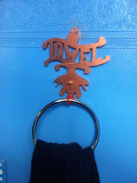 Ahora realizar 3 orificios 2 para fijar en la pared 1 para fijar gancho gancho fijo en el agujero inferior y colgar toalla anillo en él montar su arte en la pared con 2 tornillos ahora su hangar casero toalla reddy gracias por su tiempo para mirar mi arte y lo siento por cualquier error en mi inglés