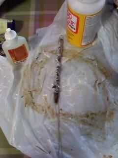 Para montarlo necesario tome el palillo más corto y fíjelo a la más larga en el centro. Asegúrese de que es bueno y ajustado. Utilizar el pegamento gorila para ayudar a unir estos p.7 juntos (creo que este funciona mejor que pegamento caliente, además de puesto que se expande y se convierte blanco hids las obras)