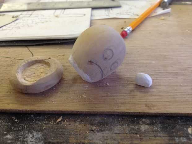 La soga está tallada en la misma manera que la figura, excepto que se hace de 2 piezas y se pegan después de talla. Las ranuras de la cuerda eran mano dibujado y corte con una lima fina pero también se puede hacer usando el cuchillo y un papel de grano 80. No te preocupes de lijar los surcos excesivamente, ya que se mancha más oscuras y añadir un bonito efecto. Empecé con un lazo de soga de 3/8" y entonces creó concaves para cabeza y cuello para encajar en. Esto le permite mantener las proporciones de la figura (sin cuello estirado) y asegura al ahorcado broches juntos justo cada vez. Solía una herramienta rotatoria con un poco de corte pequeña para crear los huecos, ya que era mucho más rápido que el tallado a mano. Para crear el ajuste entre la soga y la figura, utilice una prueba, corte y vuelva a probar el sistema. Cubrir la figura con tiza y presiónela sobre la soga, la tiza transferida le permite saber donde hay que cortar más. Cuando termine, marque donde irá su imán y perfore un agujero pasando, para que la cabeza y el torso se ajusten a los diferentes lados del imán en la soga.