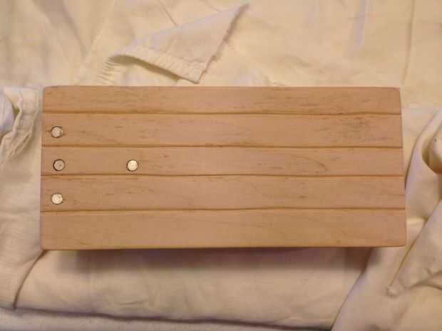 Diseñé la horca basada en las dimensiones finales de mi figura de verdugo y la izquierda sobre stock de tilo. La base es 3.5" w x 8"l x 3"t y está parado el post 15" por encima de él. Como mi verdugo 11,25" alto, que le dio ser 3,75" para la soga y el espacio debajo de la figura. Todo se une con juntas a tope con pegamento de madera. La base es un rectángulo simple con las piernas pegadas a él y 3/16" espesor piezas que componen la cubierta de la tabla. Creé las ranuras de la tabla en la parte superior utilizando un cincel de v, pero se puede hacer con su cuchillo y un cuadrado, hacer cortes angulares. El post está reforzado con 4 piezas de ángulo cortadas a 45 grados. Esto es donde una caja de ingletes viene muy bien, pero se puede hacer cuidadosamente con su plaza como guía. Regular de sujeción no realmente trabajando para algo este tamaño, así que haga su propia plantilla pegado con algunos restos de madera. Cualquier desecho con obras de bordes rectos, pero desea un tablero alrededor de 10 "x 10" para usar como base. Atornillar 2 piezas en su base para hacer una esquina de 90 grados y en las piezas a encolar. Atornille el desecho adicional donde sea necesario colocar pinzas y mantener tus piezas ajustadas y en su lugar mientras el pegamento seca. Para pegar las piezas de ángulo, utilice las sobras de los cortes de cuando corta a Junte las articulaciones, puesto que ya son 45 grados. Luego encajado 4 imanes en el poste y soporte conectarlos, que podría haber sido más de matar, pero definitivamente es una fuerte conexión.
