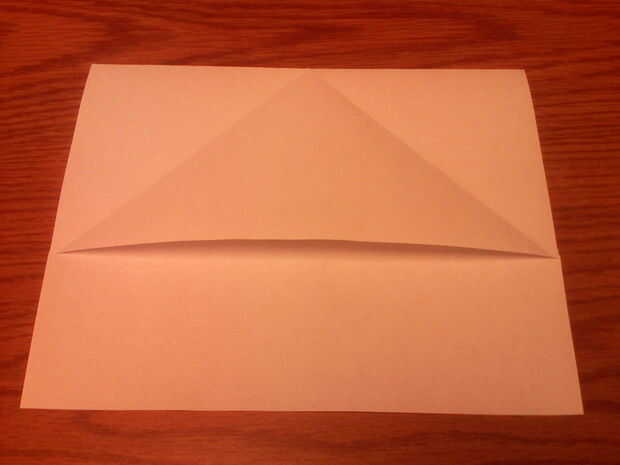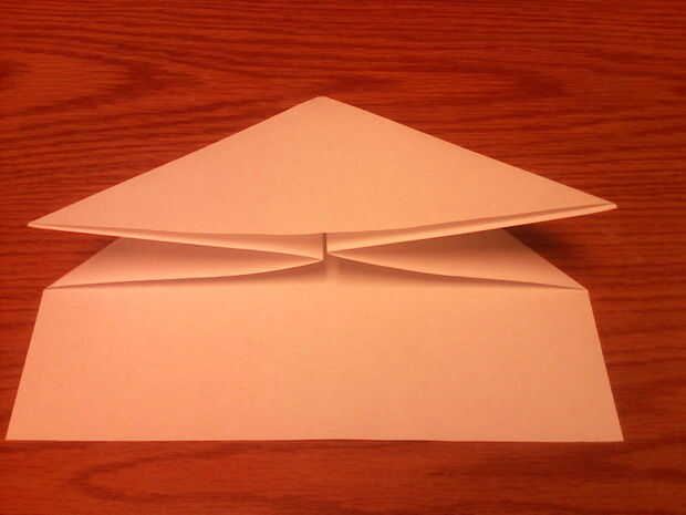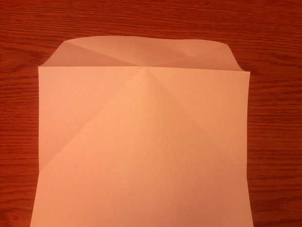 -dobla el papel para el lado horizontal doble eets m en el centro y la parte superior de los pliegues de papel hacia abajo. Terminarás con algo como la imagen de abajo!