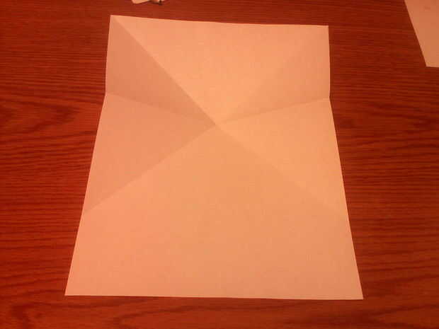 -doblar la parte superior del papel horizontalmente en el punto exacto de los dos pliegues anteriores
