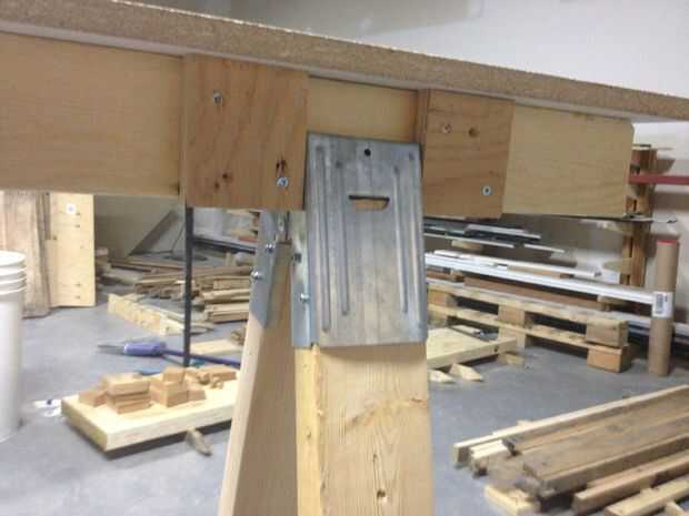 11) Asegure la parte superior del caballete del 2 x 4 'beam', desde la parte superior por empotrar tornillos o clavos y pegamento. Ver las fotos de la instalación de un caballete de aserrar que cambié después de tener problemas de estabilidad con este caballete de aserrar.