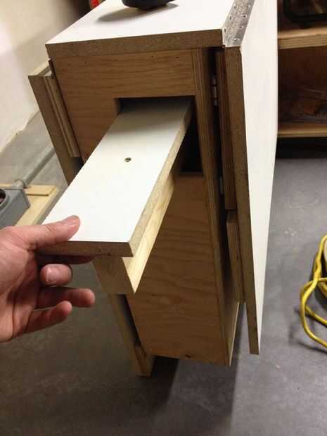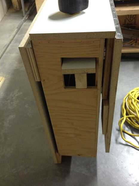 Actualización (9 de enero): Las 4 últimas fotos son del diseño revisado del caballete, que funciona mucho mejor y se ajusta dentro del gabinete principal para el almacenamiento.