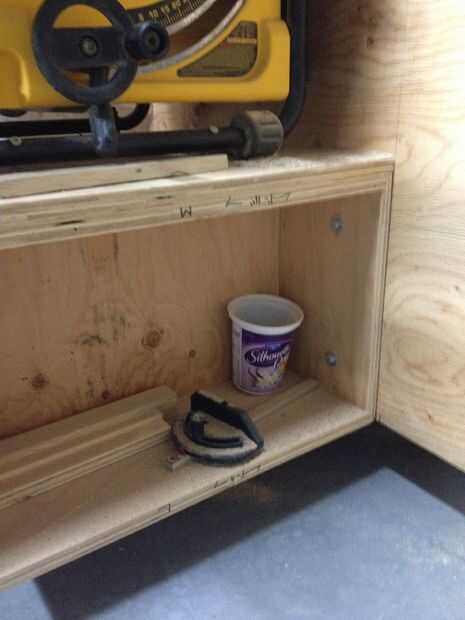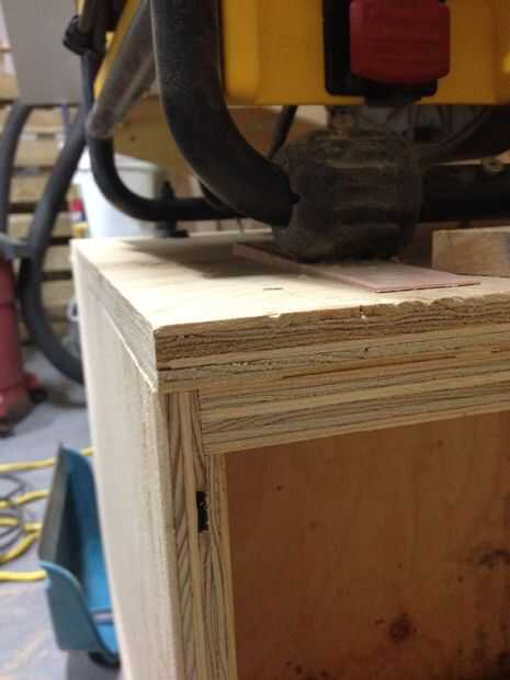 5) montar la sierra base; Vea la página 7. la base de la Sierra es básicamente un soporte con un divisor superior, base y medio. El divisor de medio da la fuerza de soporte de la sierra y evita que se corte o tormento. Router otro 3/8" de profundidad del surco aquí sólo Coloque un pedazo de madera contrachapada de 3/4" en la ranura con pegamento y tornillos.