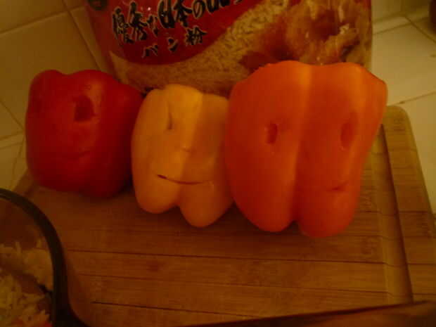 Si te estás preguntando por qué estos pimientos son felices, es porque buscaban demasiado graves por lo que había tallado una sonrisa en ellos!