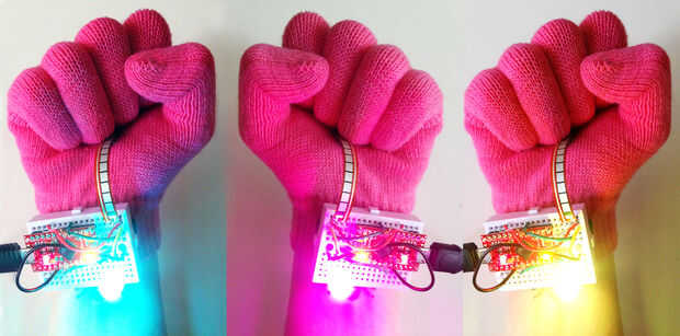 El concepto para el guante del empoderar es simple y profundo. El concepto es "completar una acción, crear cambio." — "aprieta mi puño y enciende la luz. Este primer prototipo utiliza la interacción háptica de presión. Por apretar uno es puño, en un gesto intencional, y promulgando la retroalimentación recíproca, el proyecto enseña ambos Encarnación a través de la conciencia somática intencional y el empoderamiento a través de la creación, el gesto y la reciprocidad.