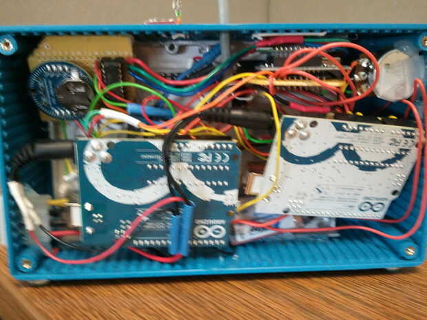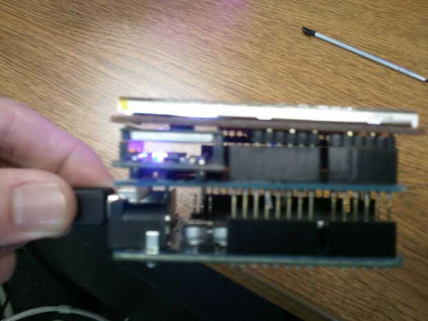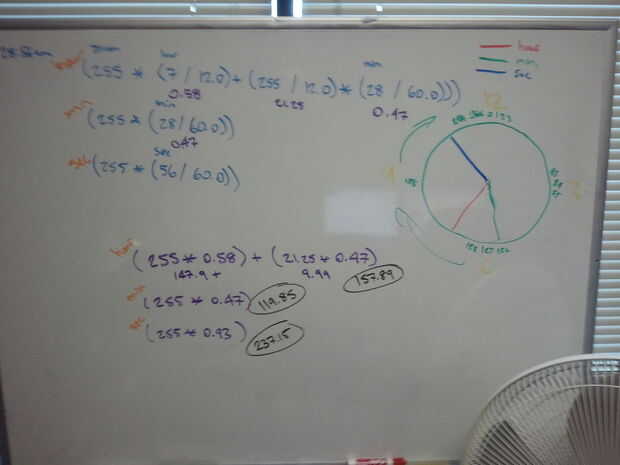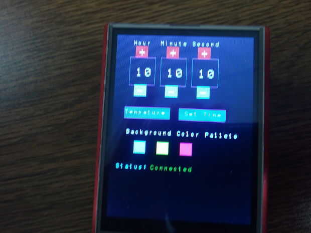He utilizado un reloj de tiempo real chronodot para almacenar la fecha y hora, la unidad también tiene la capacidad a la temperatura de informe. Para programar el tiempo usar otro arduino touchshield & xbee módulo Bluetooth. Hay un xbee correspondiente dentro del reloj, por lo que es capaces de actualizar el tiempo de forma inalámbrica. Recientemente he añadido fondo actualización de color magenta y cian predefinidas colores amarillo. La razón para definir los colores es para la simplicidad y el hecho de que RGB se utilizan ya para las manos del reloj. El mando a distancia es una opción para cambiar a la pantalla de temperatura. Esto las encuestas de la chronodot de la temperatura entonces muestra en incrementos de 25 grados. Así que para 80 grados Fahrenheit hay sería tres rebanadas de pastel completo y una pequeña porción de un cuarto para representar a 80.