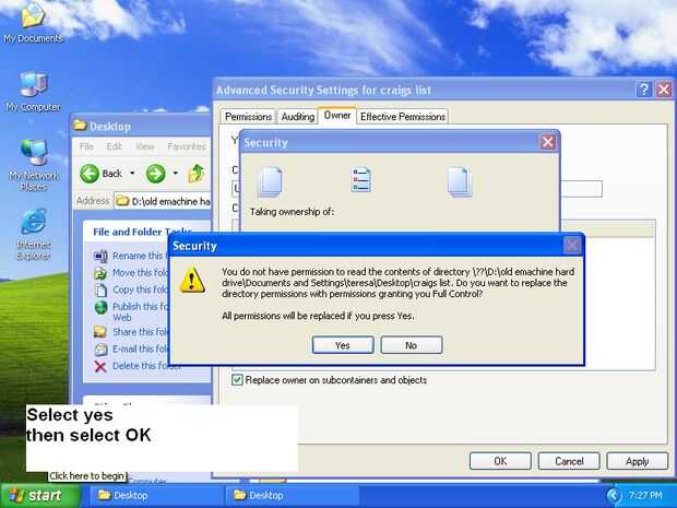Aparecerá el siguiente mensaje de seguridad. (Todos los permisos se reemplazará si pulsas sí)