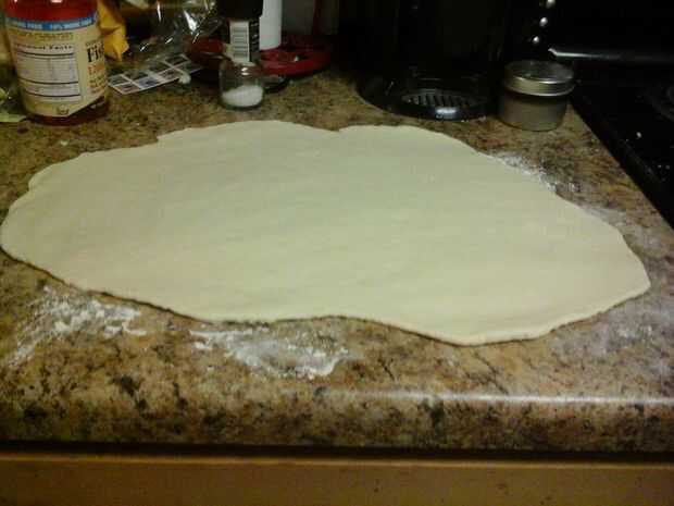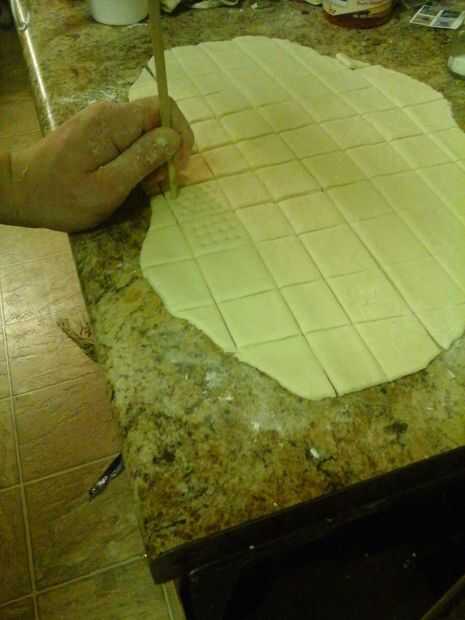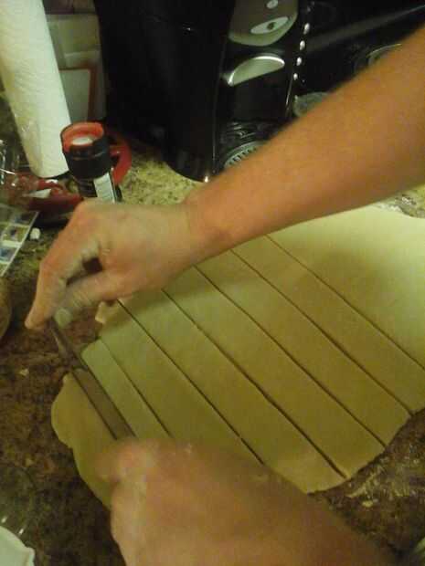 Balanceo viene a continuación. La masa debe ser desenrollada a 3/8 de una pulgada o tan. Cualquier más gruesos y las piezas son más masa-y que preferiría, más delgado y se convierten en demasiado crujientes.