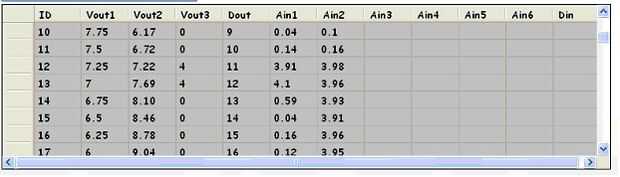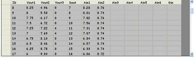 Clic en el botón 'Leer datos' transfiere los valores Ain1 y Ain2 de la memoria del micro controlador a la PC del anfitrión y actualiza el archivo de base de datos. Se observan los cambios en Ain1 y Ain2 y el cambio en Ain2. (Pantalla 6).