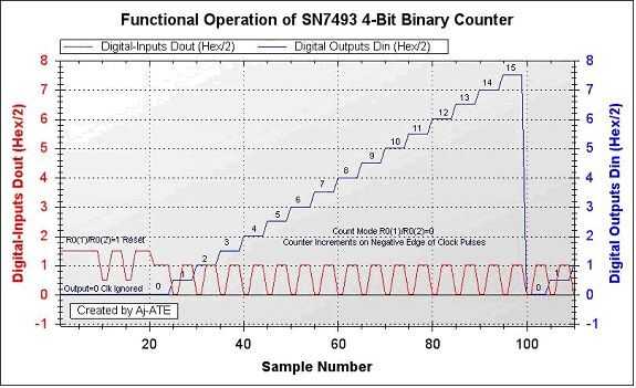 Prueba de circuito digital está ilustrada con una SN7493, 4 Bit Binary Counter ejemplo:(Screen 1).