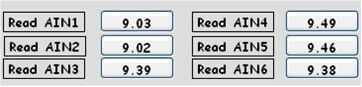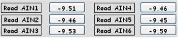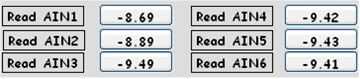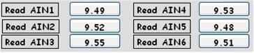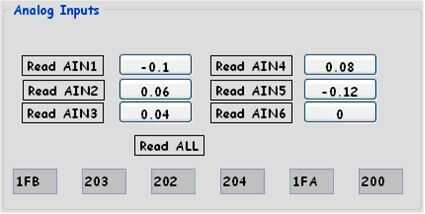 Los valores de Ain1-Ain6 para + 9.5V / - 9.5V se obtendrán en 'Modo Manual' con Vou1 y cotejar el valor con un multímetro digital. (Pantalla de 4 - 5).