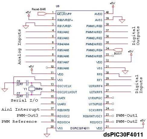 La interconexión básica del DSPIC30F4011 micro-controlador se muestra en la figura.