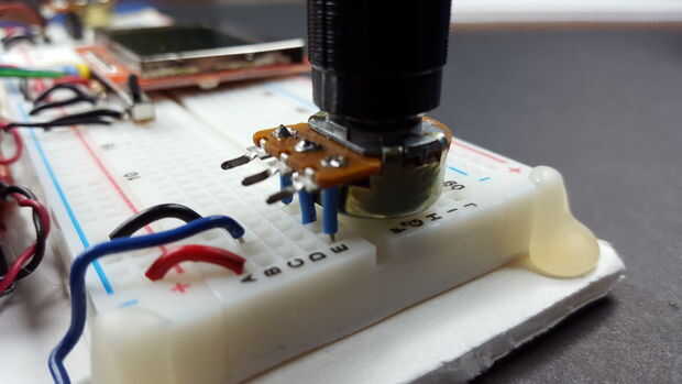 Alternativamente, sólo podría conectar los cables del potenciómetro en la protoboard. Si haces esto, te recomiendo doblar las puntas de 90 grados por lo que no extendería el protoboard conduce demasiado. (Ver foto)