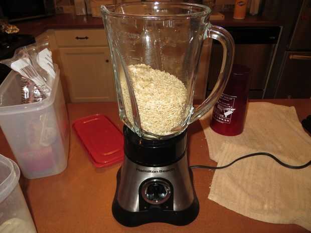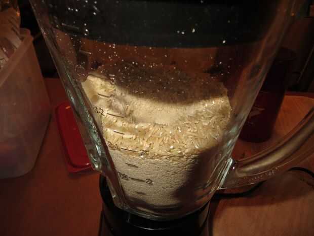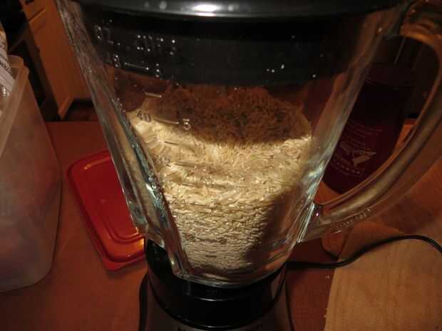 Trabajo media una libra a la vez a través de la licuadora (debido al mayor contenido de humedad del arroz agrupan más fácil y obstruir las hojas)