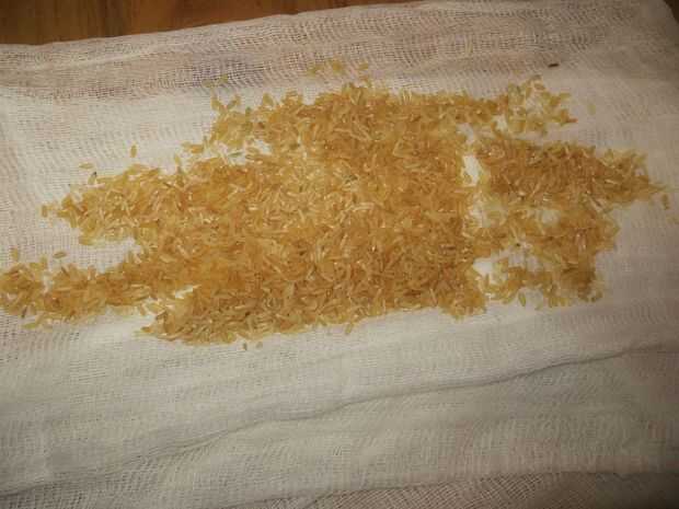Remojar el arroz por lo menos 7 horas (He encontrado que si fácilmente puede romper un núcleo de arroz con la uña del pulgar entonces eres lo suficientemente bueno)