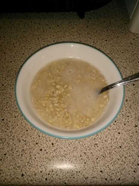 Este paso es bastante simple. En primer lugar, obtener su recipiente de microondas seguro y llenarlo aproximadamente un tercio de la manera con harina de avena seca. A continuación, añadir el agua... pero no demasiado, he encontrado los mejores resultados proceden de la avena es de una textura seca blanda después de que se ha hecho cocina. Lo que nos lleva a la última tarea de poner la avena mezclada en el microondas, fijar durante 2 minutos luego la espera para terminar.