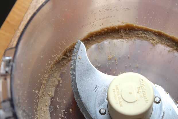 Cuando haya terminado, usted podría notar una capa de girasol "mantequilla" (véase la segunda foto) en la parte inferior del procesador. En no añadir a la harina - es muy húmeda y aceitosa y hará que se agrupan!
