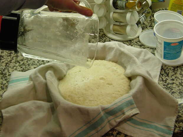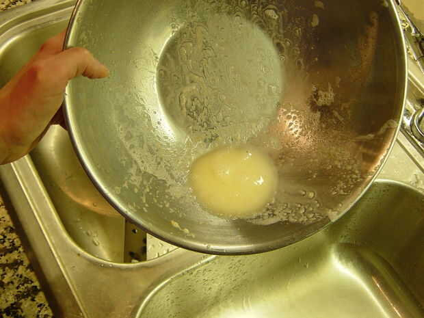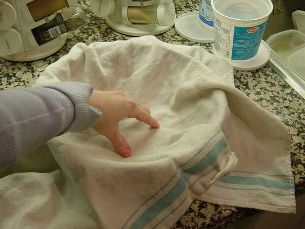 Haz mucho el agua hacia fuera como sea razonablemente posible. Si estás desesperada, usted podría tratar de poner la bola de masa entre dos moldes para galletas o placas y luego sentado en él, pero no se hace responsable de cualquier placa que se rompe o cualquier lío que!