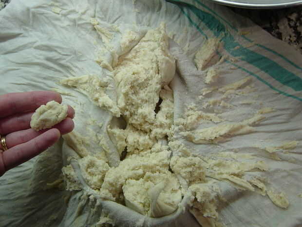 Cuando haya terminado, la masa debe ser bastante seco y un poco grumosa. Usted puede exprimirlo juntos en grupos en la mano. Casi te parecerá demasiado desmenuzable, como si no pudo contener posiblemente juntos una vez que golpea el agua hirviendo. Confía en mí, esto es la consistencia adecuada.