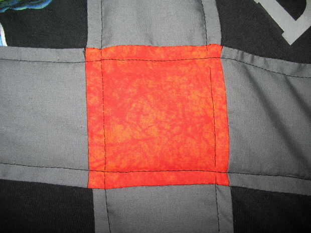 Una vez que todo está cosido, doble los bordes de respaldo por la mitad encima al frente de la colcha para formar un borde. Los bordes de la frontera en que la frontera restante mide 2", ver cuadro #4. Prender la vuelta (mucha ayuda a la fijación) y coser todos los bordes de la frontera en el tejido. Doblar esquina sobre uno otro. Lo que el método que elija no es importante, pero ser consistente con las cuatro esquinas.
