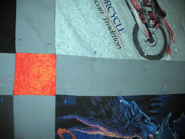 Comenzar fijando todas las columnas y todas las filas siguiendo las tiras del rectángulo. Pines en cada lado de las filas y columnas de rectángulo, ver cuadro #2. Este ayudante de voluntad con la máquina que acolcha.