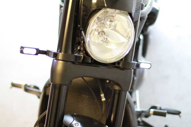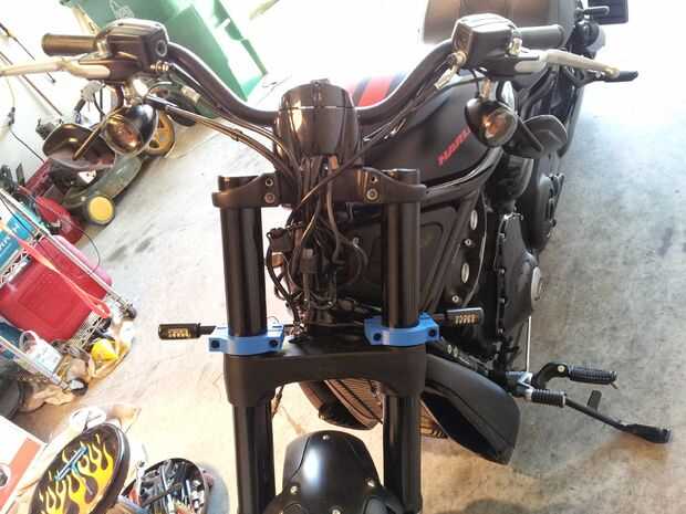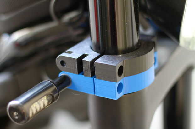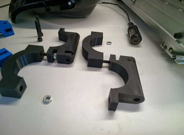 Esta configuración debería funcionar para cualquier bici con horquilla delantera de 55mm; pero sobre todo poseer un 2012 Harley Davidson Night Rod especial (VROD) y han sido hacking alrededor con él un poco. Una modificación futura es cortar las barras de la manija o ir con una configuración de bajo perfil y eliminar las señales de la vuelta bar montado de fábrica manija para despejar la tapa del tanque. En preparación para esta modificación diseñé un montaje 3D imprimible que cabría la miríada de polos disponible Monte señales puesto que yo estaba teniendo un tiempo difícil encontrar un soporte posventa de tamaño apropiado para el sistema de horquilla más grande invertida más nuevos en el Vrods. Este sistema de 2 piezas abrazaderas contra cada horquilla y permite montar diferentes señales del mercado. Opté por un sistema de señal de 4 en 1 con DRL o lateral marcador izquierdo y señales adecuadas así como indicador posterior a las señales de frente 2. El 1 º modelo de generación se verá en el debajo de las imágenes fue impreso en azul y había sido en mi moto desde julio de 2013 hasta marzo de 2014 sin signos de desgaste o daños y viajan todos los días con mi bici. He revisado mi diseño para facilitar el montaje al llegar a las tuercas con una llave y luego reimpreso en negro por lo que mis compañeros sería divertido bastante haciendo de mis unidades de prueba de color azul.