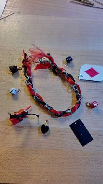 Después de la adición de lazos y anillas a cada uno de mis encantos, arregló alrededor de la cadena para ver cómo me gustaría pegarlas.