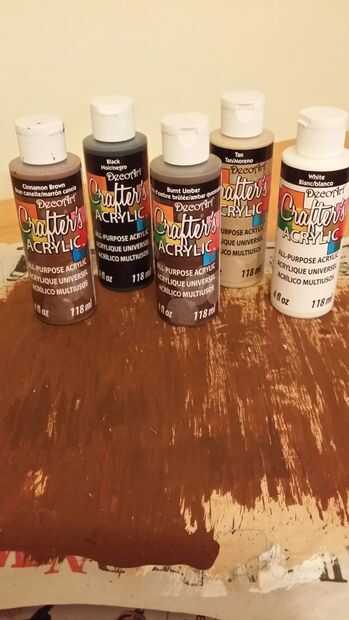 -Pintura artesanos (blanco, bronceado, canela umber quemado, marrón y negro) ($1 cada uno en el almacén del dólar)