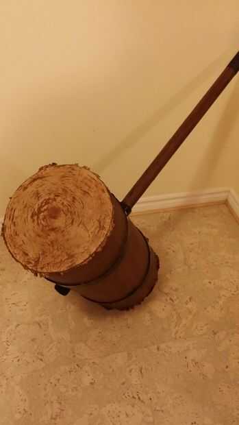 -En los extremos de cabeza de martillo usé una escoba wisk/maíz con muy poco de pintura marrón Canelo. He pintado en un movimiento circular y siguió la curva de los extremos circulares. Esto dio el efecto de las líneas de la edad en los extremos de la cabeza de martillo por lo que parecía el final de un tronco cortado.