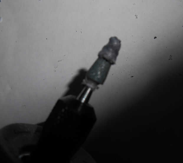 Nota: Plástico de la máscara puede ser derretido en la broca de corte de la herramienta Dremel. Si esto ocurre, apague la herramienta Dremel y quitar el plástico con las manos o usar algo para sacar de la broca. 9. una vez que se corta la máscara, utilice la punta de papel de lija de la Dremel y suavizar los bordes de la máscara. Si hay cualquier bit extra entregar, utilice Xacto/cuchillo para cortarlo. En este punto, usted también puede hacer un borde biselado en el borde de la máscara si quieres. Seguir lijado con la Dremel y utilice papel de lija fino, super luego papel de lija fino para seguir alisando los bordes.
