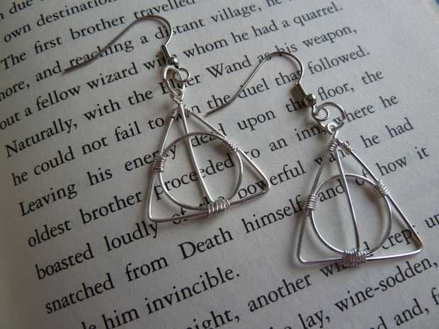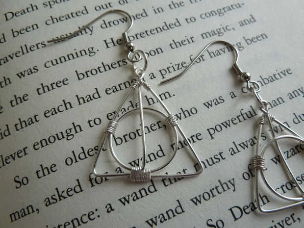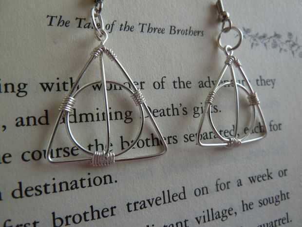 . Mi mente fue de estos pendientes al collar de reliquias de la muerte, y este par de pendientes fue el resultado final! Por supuesto, si algo se hace un collar, todo lo que tienes que hacer es añadir un collar en vez de pendientes :)