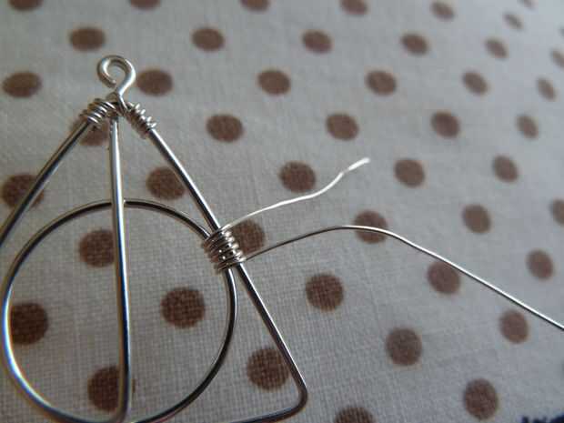 Envuelva un poco de alambre alrededor de las partes donde el triángulo y el círculo toquen así. Use el técnica descrita último paso para acabar con los cables. Otra vez, usando la misma cantidad de bobinas y terminando a los cables del mismo lado hacen que se vea mejor :)