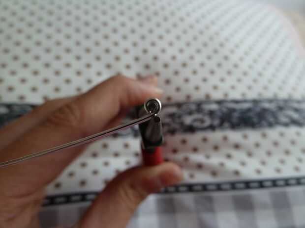 Con la punta de sus alicates de punta redonda, doble un lazo pequeño. Coloque las pinzas como se muestra en el cuadro cuatro y doblar el cable restante ligeramente alrededor de él para hacer el ciclo de sentarse directamente sobre el cable.