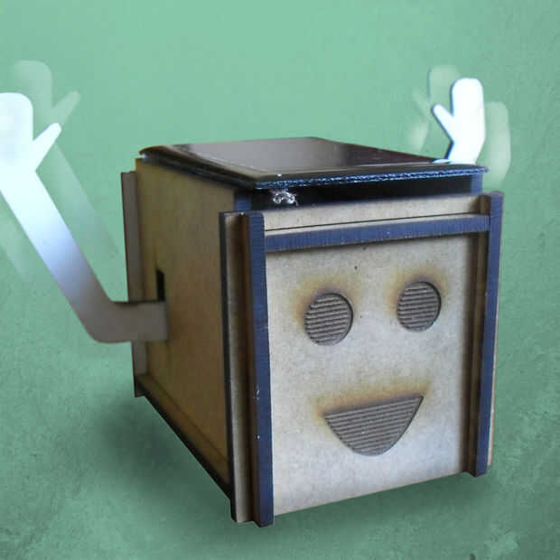 Harry feliz es un láser pequeño caja de corte. Cuando ve el sol él ondas escúchelo