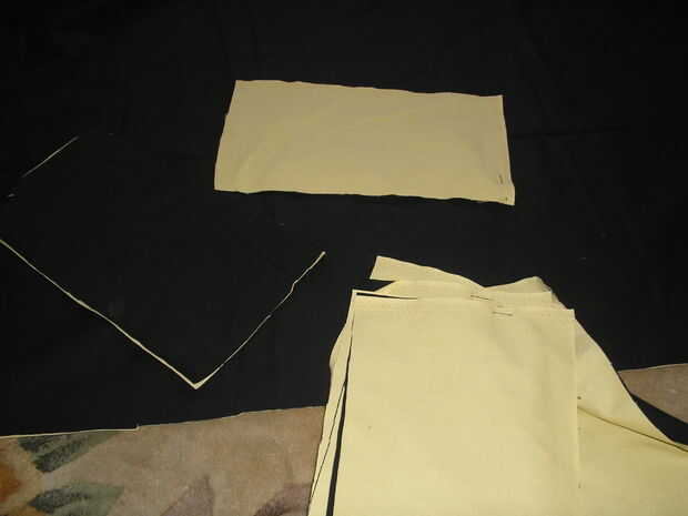 Con pliegues de 2 pulgadas, cada pieza de tela que se recorte debe ser de 6 y un medio pulgadas. Para asegurar cortes iguales de tela, cubrió ambos trozos de tela juntos, cortar un rectángulo de 6.5 11 de papel y utiliza como patrón. (Nota: Si agregó un rectángulo adicional, puede hacer estos rectángulos un poco más pequeño, o coser una costura más grande.)