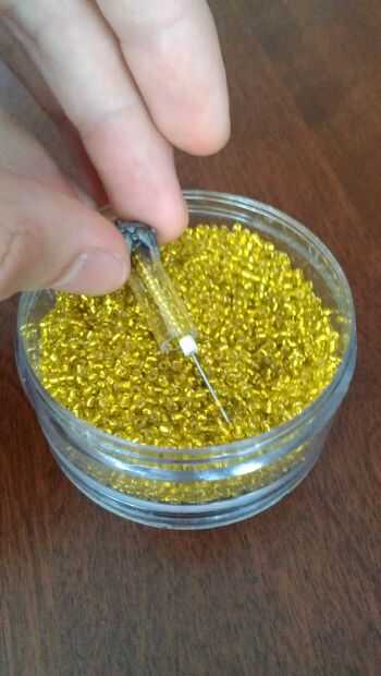 Sé que ya has puesto un montón de partes posterioras del pendiente en este cable, pero si has pasado por desgracia derramar cualquier granos de la semilla en este momento, sabemos que queremos para asegurarse de que esto no viene aparte! Así, tomar tus alicates y doblar la parte inferior del alambre alrededor de la parte posterior de la pendiente para asegurarse de que no se caiga nunca apagado (ver la tercera imagen). Si quieres estar realmente seguro (¡ y no te culpo!), ponen un poco de pegamento fuerte y claro en la parte inferior para acabar con el sello.