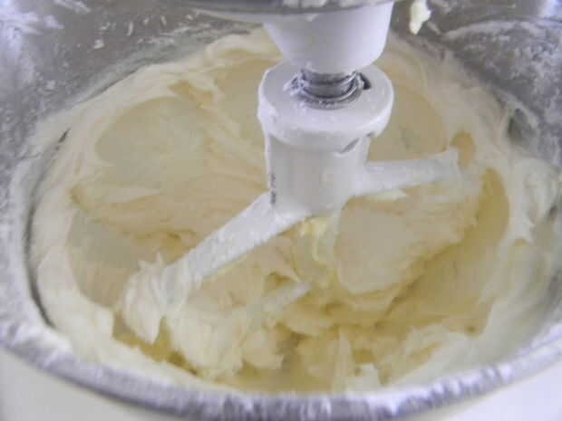 Mezclar mantequilla, mitad y mitad y vainilla en la batidora de mano. Mezcla en baja por 1 minuto hasta que se ablande la mantequilla, luego se mezclan en alto durante 3 minutos. Colocar la mezcladora a baja y agregar azúcar en polvo. Mezclar 1 cucharada de jarabe de maíz para suavizar el helar. Agregar más jarabe si el glaseado es de grueso.