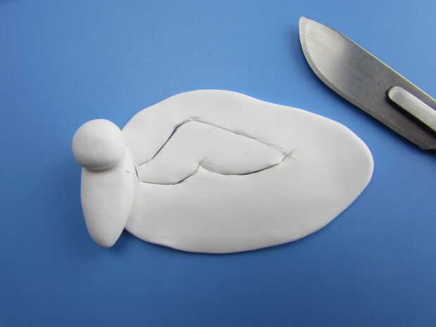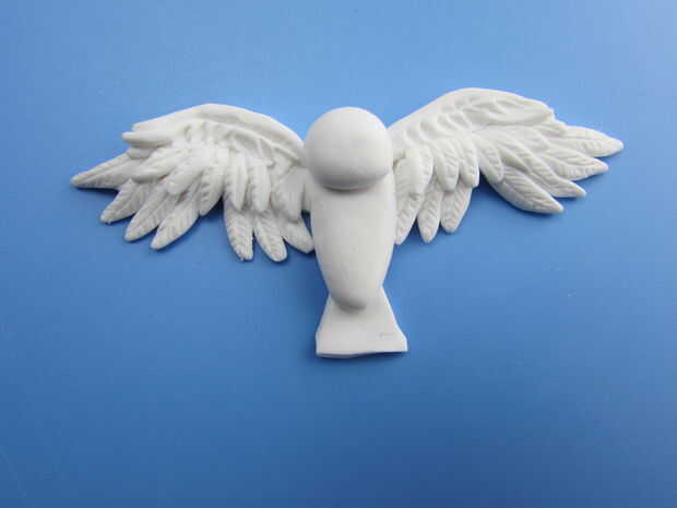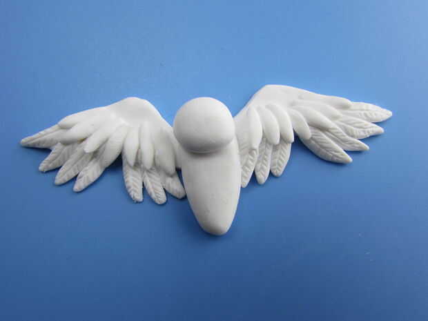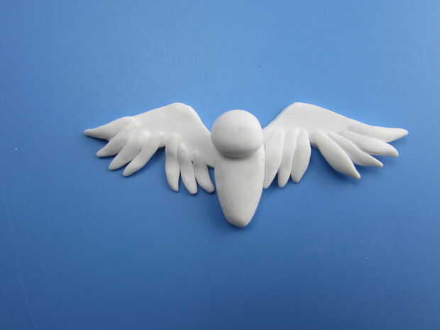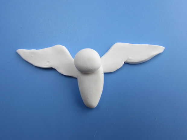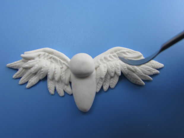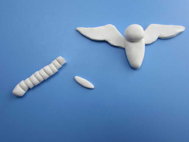 Para hacer las alas, cortar en forma de un corazón invertido como muestra de una pieza delgada de arcilla blanca y hacer otro para la otra ala.