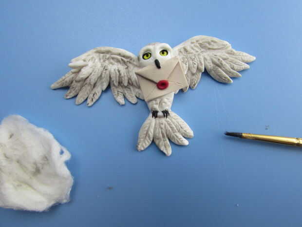 Acentuar las plumas aplicando una adelgazada abajo capa de pintura gris clara y luego quitar el exceso de pintura en la superficie con un pañuelo.
