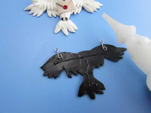 Para hacer el colgante, me agregó una hoja de barro negro en la parte trasera y conectados 2 pedazos de pernos del ojo. La hoja extra de arcilla añadido hará el colgante durable. También puse barro líquido para ayudar a colocar el barro cocido de la arcilla cruda.