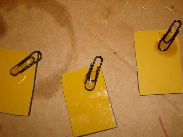 6. Pegar el clip en la esquina (de la parte posterior de la ficha negra, asegurándose de que pegue a la esquina correcta por lo que el libro se abrirá en la dirección correcta).