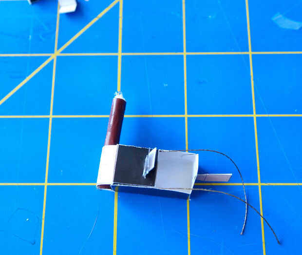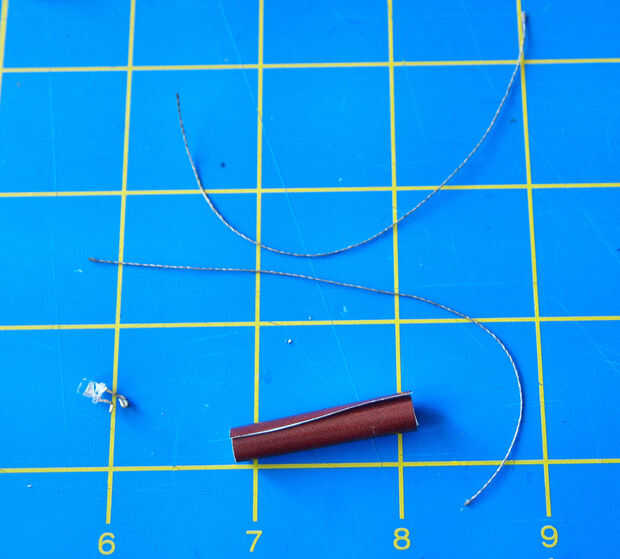 • Inserte el LED en un extremo de la varilla, asegúrese de que los dos hilos se sientan en diferentes capas para evitar cortocircuitos.