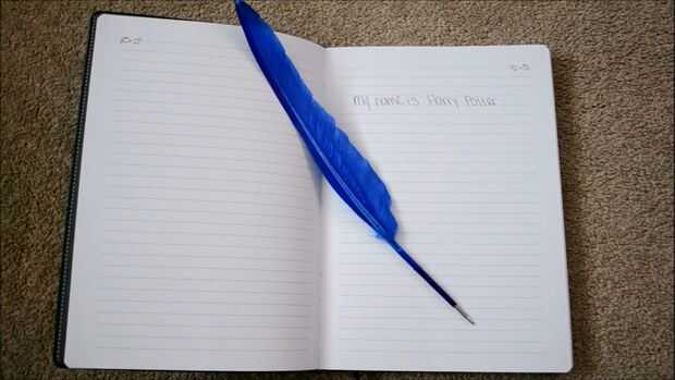 Para hacerlo aún más como una pluma buscan plumas de caligrafía pequeña en el almacén del dólar! Lamentablemente no pude encontrar ninguna así que tuve que usar una pluma azul regular.